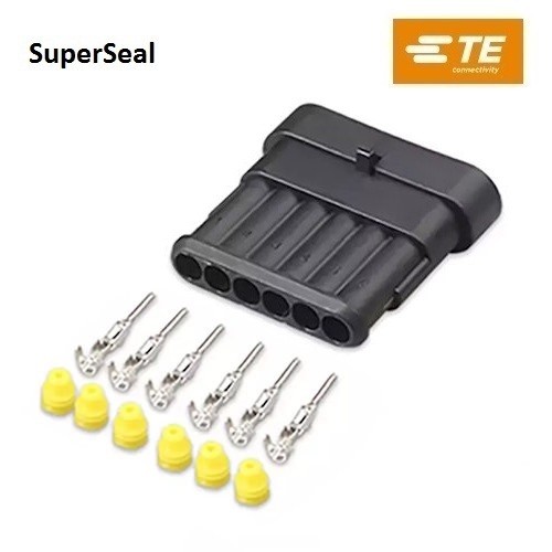 AMP SuperSeal 6 Way Female Connector KIT, genuine brand TE Connectivity, cable section 0.75-1.5 mm2, max current 14A.